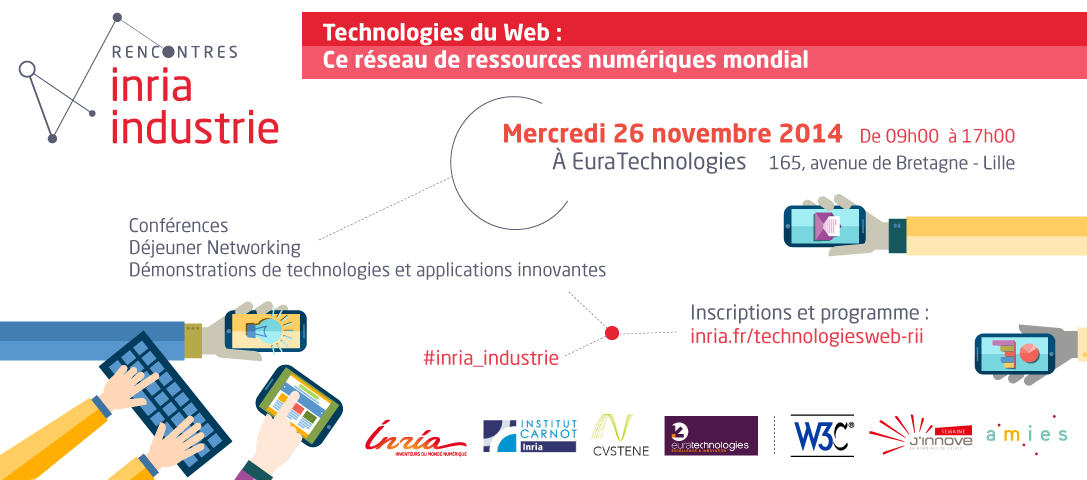 Le W3C est partenaire de la rencontre Inria Industrie sur les « Technologies du Web », le 26 novembre 2014. L’évènement aura lieu à Euratechnologies à Lille, de 9h00 à 17h.